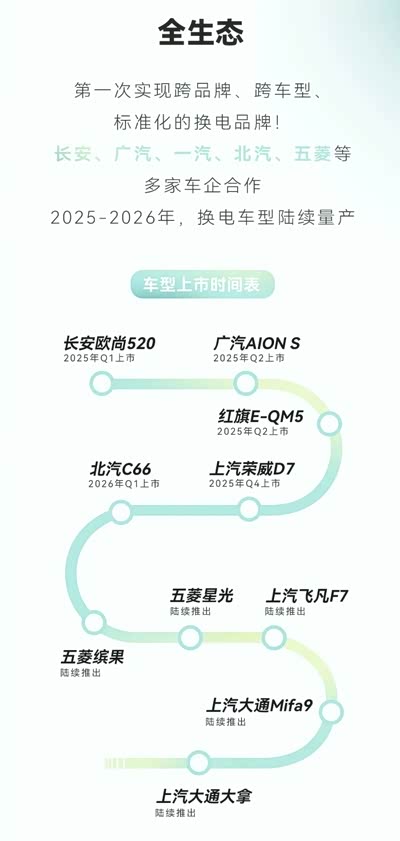 还一下子发布了和宁德时代合作的长安、广汽、一汽、北汽、五菱等车企,即将推出的10款换电车型。