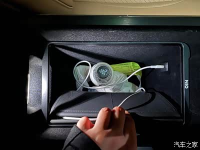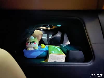 超大的中控台下方储物格。上方亮灯的附近就是香氛瓶放置的地方。