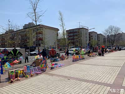 公园广场的一面都卖风筝的小商小贩,时不时有围观的人们。