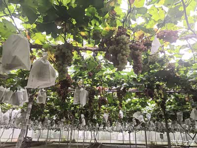 前面一些人摘了一些试一试味道,那里有水管可以洗葡萄