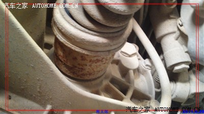 生锈的底盘,常在海边跑呀,没有办法。发动机位置没有喷防锈油漆。