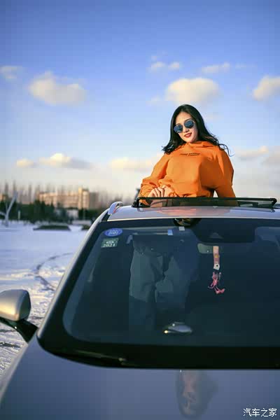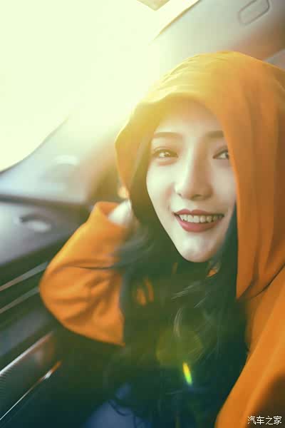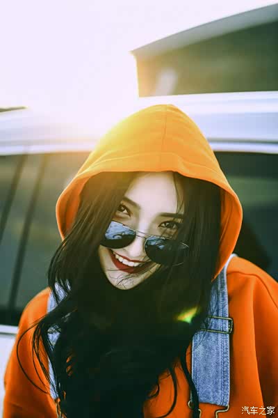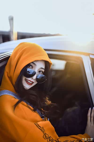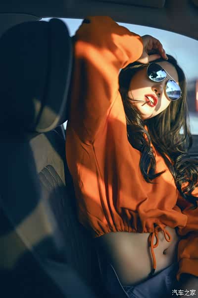 戴上墨镜侧身躲避阳光俏皮可爱,不过我猜肯定是忘记打下遮阳板。