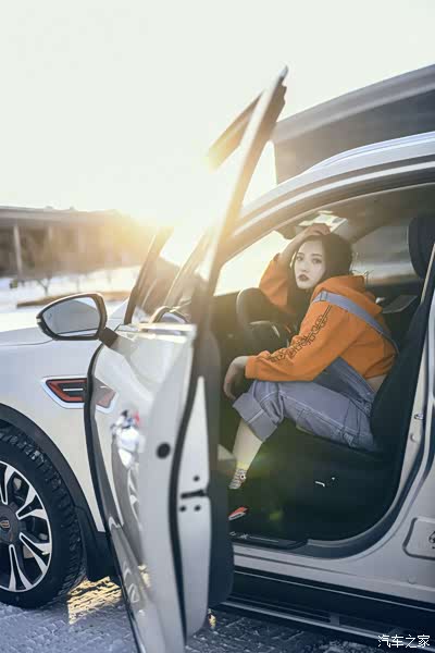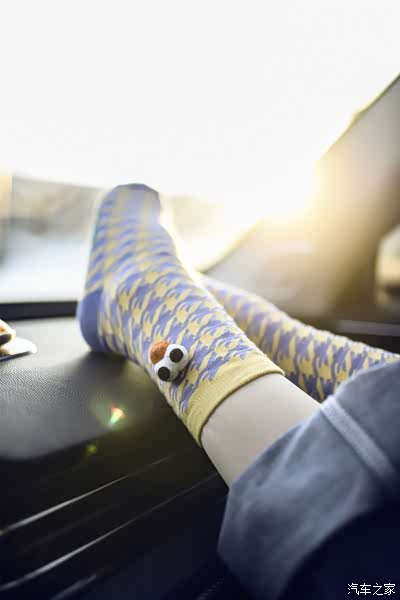 在小仙女专座上慵懒的靠着,小脚丫都搭在中控台面上了,袜子很是可爱。