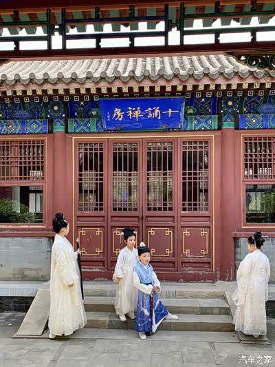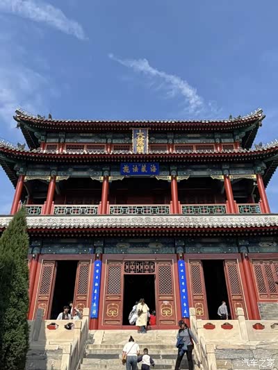 午后阳光正好,从军校出发,10分钟车程就到了大慈阁。这座始建于元代的古刹,红墙金顶在蓝天白云下格外醒目,门口的石狮子威武矗立,守护着千年的宁静。