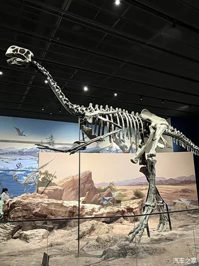 下高速后沿阳光北大街直行,很快就看到了中国古动物博物馆的标志性建筑。停好车走进馆内,巨大的马门溪龙骨架模型立刻占据了视野——长达26米的身躯从一楼延伸到二楼,脖子像条灵活的长鞭,仿佛下一秒就会甩动起来。