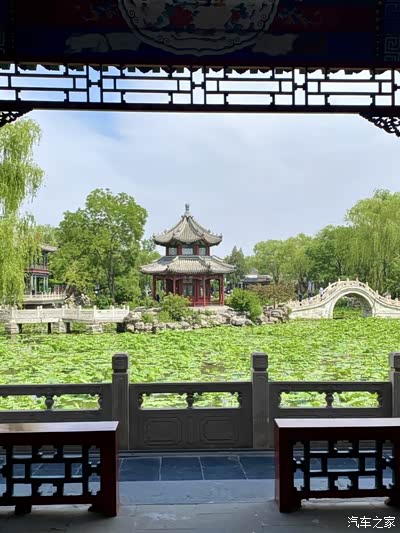 坐在水榭里歇脚,看远处的九曲桥蜿蜒入水,岸边的垂柳枝条垂到水面,光影在池底晃动。偶有画舫从桥洞下划过,船娘的歌声轻轻飘来,与蝉鸣、水声交织在一起,像一首夏日的歌谣。这里没有城市的喧嚣,只有草木的清香和时光的悠然。
