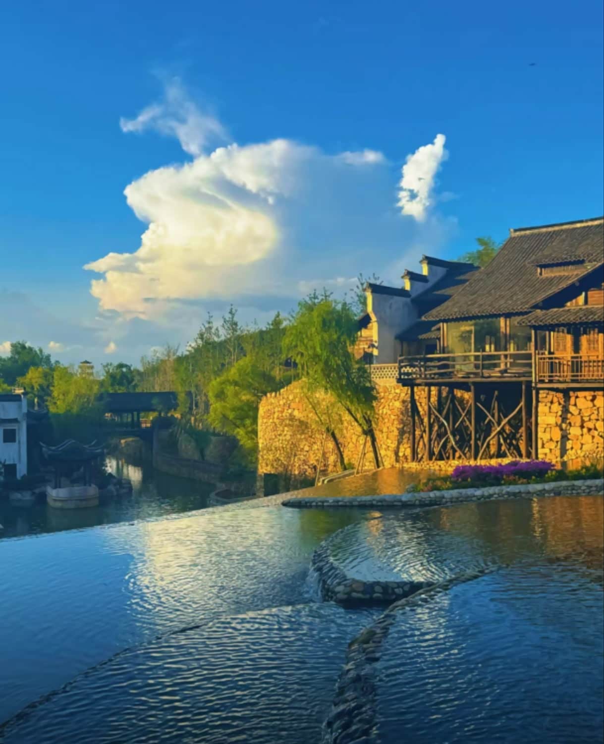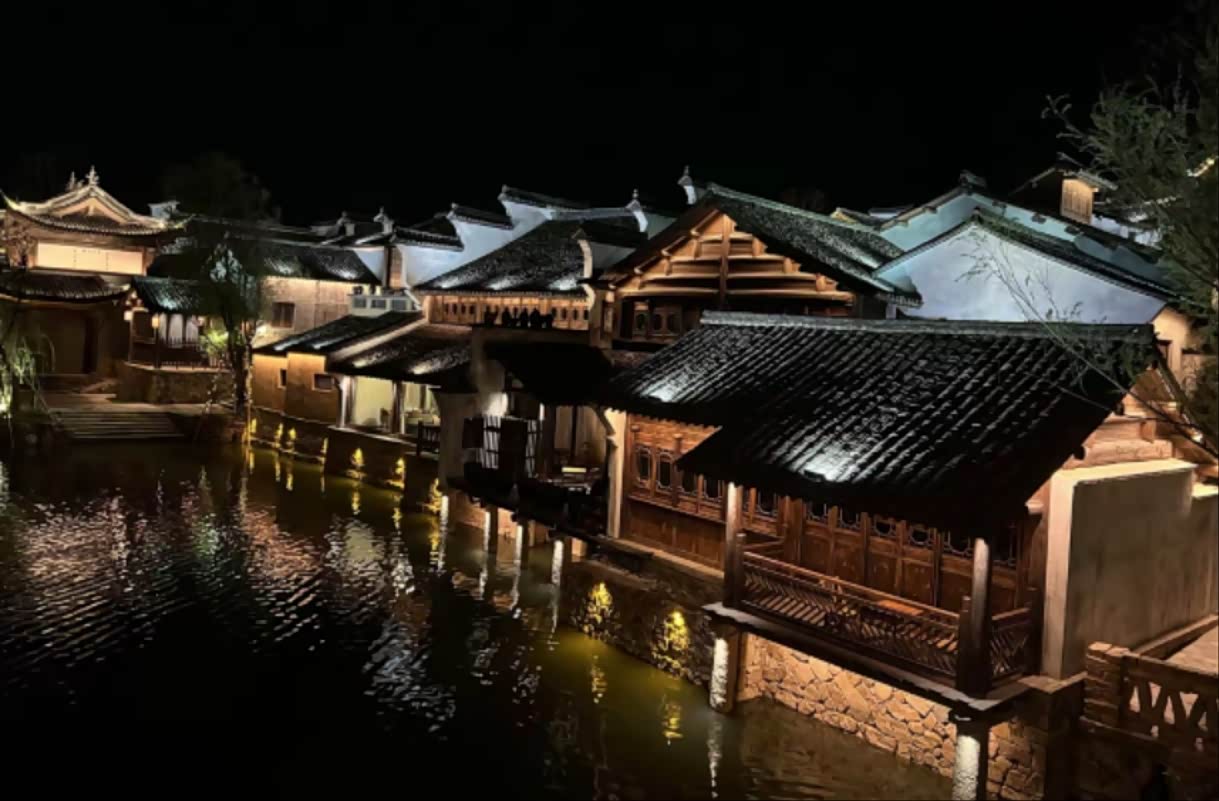 饭后在小镇的“月光步道”散步,步道两旁的芦苇丛里藏着太阳能小灯,踩上去会亮起暖光。路过“听涛茶社”时,里面飘出评弹的调子,忍不住进去点了壶碧螺春,听着“唐伯虎点秋香”的唱段,直到茶味渐淡才离开。