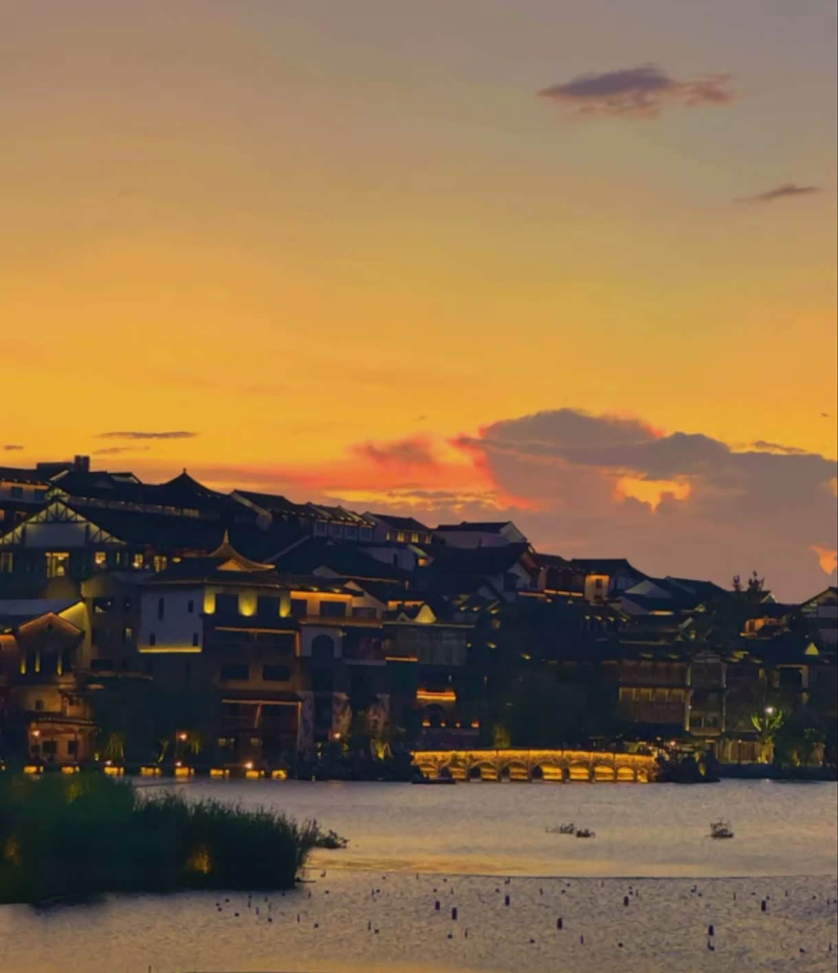日落沉进湖底后,去“晚香楼”吃晚餐。选了临窗的位置,点了砂锅炖湖藕(藕孔里塞满糯米,粉糯香甜)、油炸银鱼(裹着薄薄的面糊,鲜得掉眉毛)。窗外的路灯次第亮起,湖面倒映着暖黄的光,像撒了一把星星。