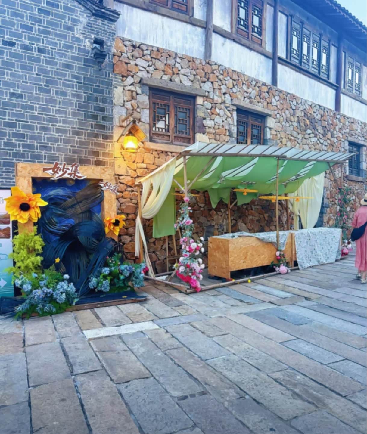 上午决定走“慢游路线”。从民宿往北拐进“窄巷”,这里藏着几家有意思的小店:“旧物仓”里摆着80年代的收音机、搪瓷杯,老板是个老知青,会讲每件物品的故事;“草木染工作室”里挂着蓝白相间的桌布、围巾,老板娘教我们用苏木染了块方巾,说晒干后会变成温柔的绛红色。