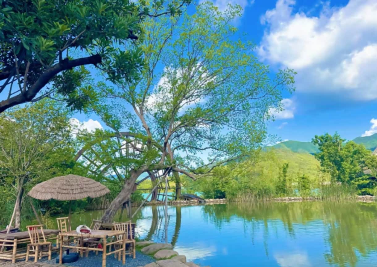 清晨被鸟鸣叫醒,7点的小镇还浸在薄雾里。穿双布鞋去“晨露菜园”,这里是民宿自营的菜地,种着秋葵、茄子、小番茄,老板娘说可以自己摘,摘完让厨房加工。摘了几个红彤彤的番茄,咬下去汁水迸溅,是城市里吃不到的新鲜。