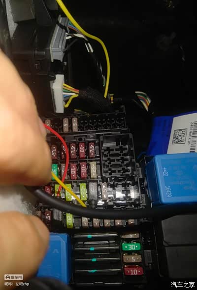 原车插头只有红黑两色线引上来的线从左侧a柱向上走插在中间位