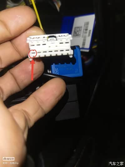 等仪表灯灭了再把这个插头拔下来(一定要改装前电池断负极),重点来了,这个插头有上下两排插脚,上面一排一边有三个孔,一边有两个孔,我们要用到的是三个孔这边的下面这排的第一个孔,注意是下面一排的第一个孔。