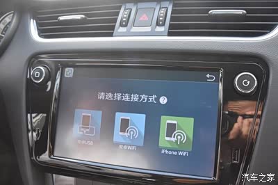 中间是一块TFT彩色触摸屏,显示效果清晰,最下部布置了六个常规功能, 分别是收音机、媒体、电话、导航和设置。