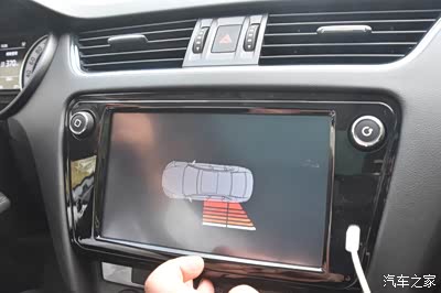 倒车时, 安装在尾箱上的摄像头能将倒车影像直观地呈现在这块9寸屏幕上,并且带有导线标线, 这点和上代MIB 差别不大。