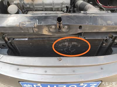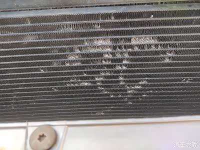 这张图就很明显了,散热器都变形了,一方面是虫子撞的,另一方面就是杂物落在上面完成的,主要这样会影响水箱的散热情况造成发动机水温升高情况,所以必须避免