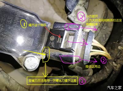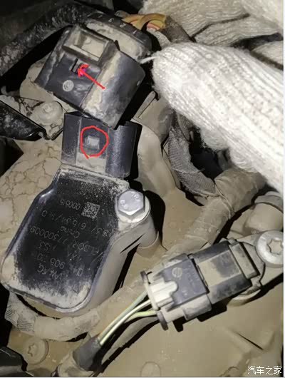2,*****画重点****大众车拆零件都需要巧力非蛮力,网上转了一圈没有看到点火线圈插头的拆除细节,都说用力拔纯属扯犊子,拔到怀疑人生都拔不出来,还是用个小铁片撬开侧面卡位,用点小力就可以拔开插头(这是成功的关键工具)