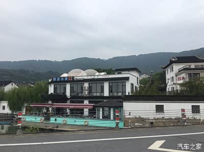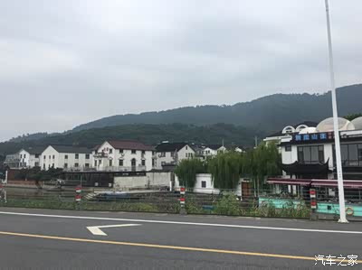 在山与水交界处的弯道,车辆纷纷停下。因为这里,左手是大山和山庄,右手是湖面,而前面,就是临湖的小镇,那里有美食。