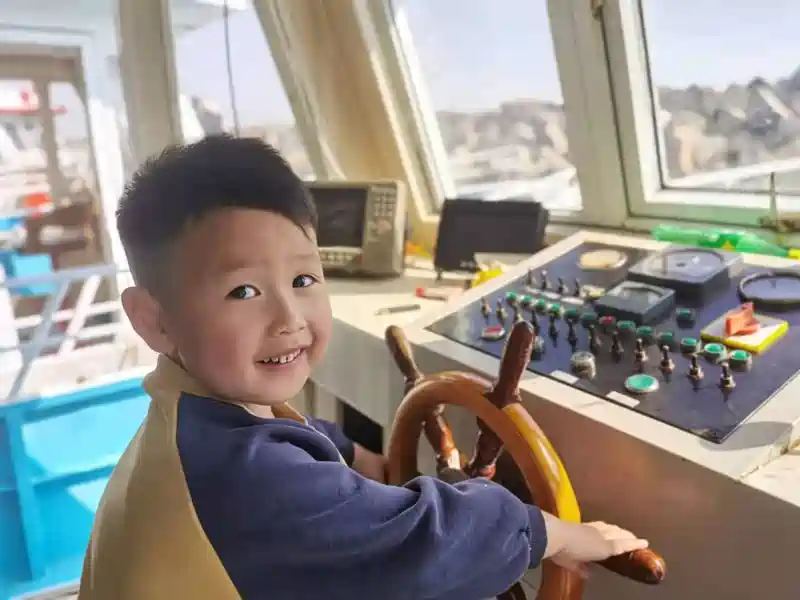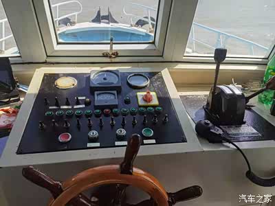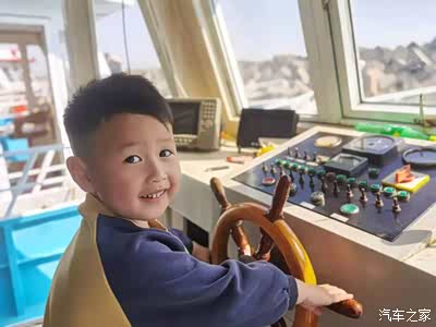 儿子在试驾开船