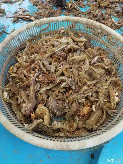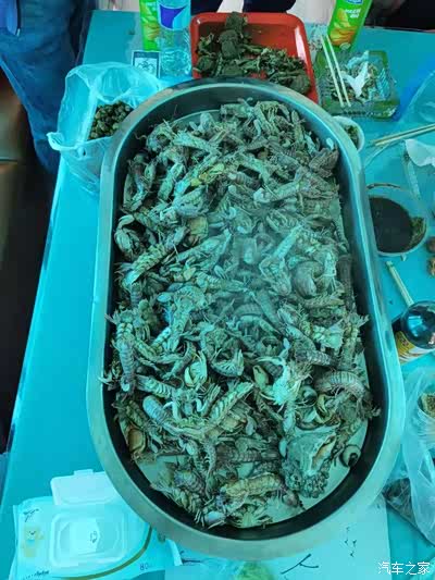 第一网上来,也就是有一斤多皮皮虾,还有一些叫不上名的小鱼,后来把小鱼放生了。又过了近两个小时,第二网还算可以,有三四斤皮皮虾,这样就凑到一起,蒸了一锅。船老板加工好后,又配了一个鲅鱼丸子,端上桌子,我们把带来的各种食物打开,一起享受起美味海鲜。