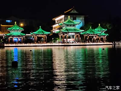 入夜,吃饱喝足以后就散步走到濠阳码头,领略周边风光与喷泉灯光秀,接着一路走到濠河风景区入口,到河对面乘坐水上游船,饱览濠河夜景。濠河是国内保留最为完整的古代护城河,也是国家5A级风景区,整个濠河曲曲折折,迂回激荡,呈倒置的葫芦形状环抱老城区,形成了“水抱城、城拥水、城水一体”的特色,素有“江城翡翠项链”之称。开船的师傅一边给我们介绍者两岸的风景名胜,一边细数着南通的悠久历史,感觉南通人对自己的城市特别的热爱和自豪。夜幕下两岸的灯光五彩缤纷,水光潋滟,令人沉醉。