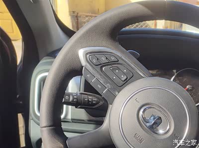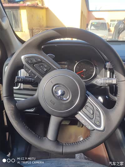 真皮的多功能方向盘,操控起来手感很好的,根本不是那么笨重,天天去田里,开一辆大皮卡,那感觉相当满足