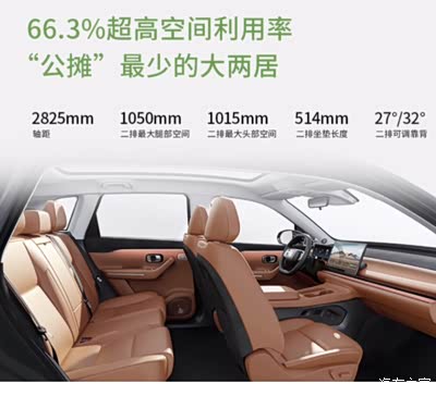 66.31%超高空间利用率,超越30万级豪车水准;3D人体工程学座椅,贴合柔软包裹感好,每一位乘员都有大沙发;多变灵活座椅调节设计,可插拔式头枕、靠背170°放平,实现上车即躺平;后排支持4、6比例放倒,更好地满足不同家庭成员数量的出行需求;豪华静谧空间,全系标配12个高品质扬声器,提供8种音效模式,宛如置身移动歌剧