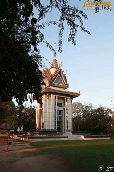 到达柬埔寨首都金边,我俩先后去游览了钟屋杀人场、金边王宫、柬越友谊纪念塔。