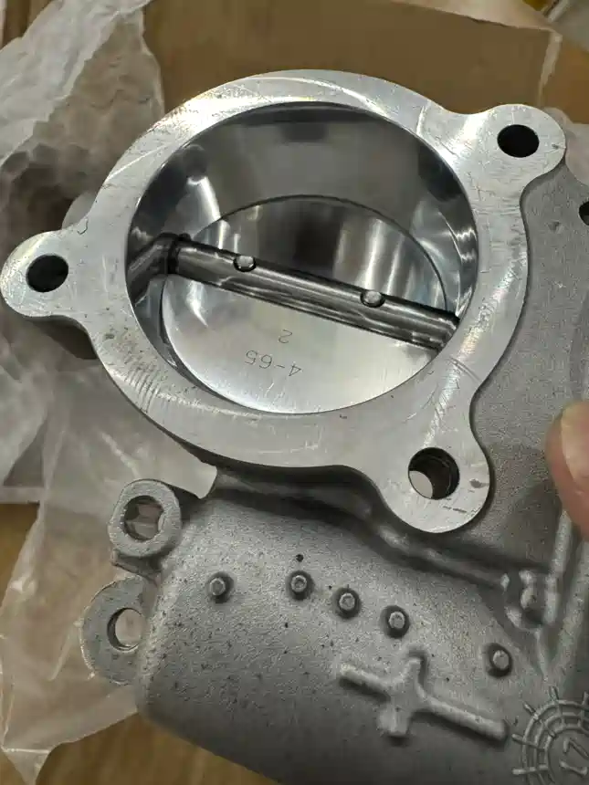 整了个加大节气门,原厂节气门直径57mm,重新加工后扩到60mm。换了新的翻板,内部抛光,减少积炭粘合。非常期待上车效果。以前自然吸气加大节气门能提升动力,涡轮车就不一样,涡轮车动力被涡轮压力限制,单纯加大节气门不会改变动力,但是能明显提升动力响应,期待上车效果