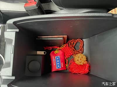 扶手箱非常深,珠子是堂哥8年前从西藏回来送给我的,吉祥之物,保佑了我8年,香囊是事故处理好了以后专门去峨嵋山脚下报国寺求的,师傅开过光,希望它们继续保佑我们永远平平安安。