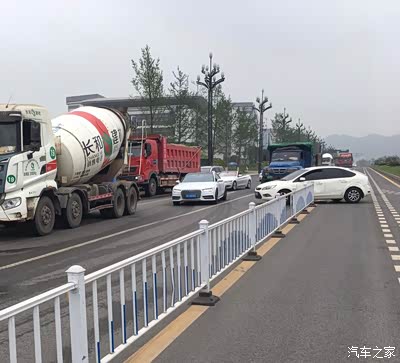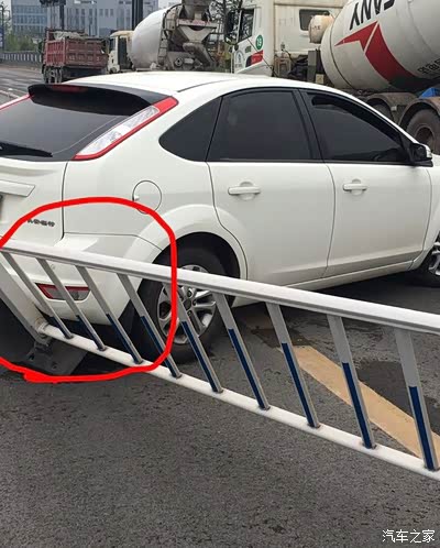 最后一撞把护栏撞飞了一根,抵到旁边儿这根长的才一脚刹车停下来了。