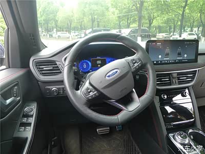 我和媳妇都比较爱干净,所以锐际虽然用了有1年,但是车内看起来依然整洁如初。当然,这和锐际的内饰风格有很大的关系。ST-Line版本的锐际内饰是全黑色的,看起来很有性能车的味道。中控台上除了空调出风口,就是仪表盘和中控大屏,看起来十分简洁,又透露出一种科技感。