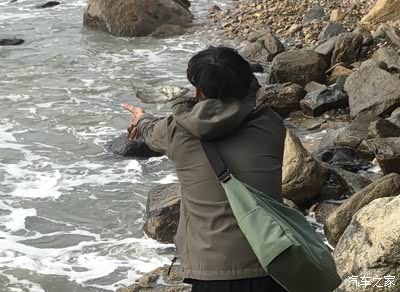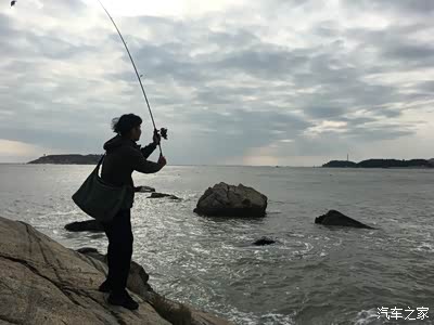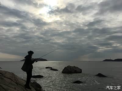(遇到合适的海岸边了,老公靠边停拿起他的钓具了,我可以给小P拍帅照了。)