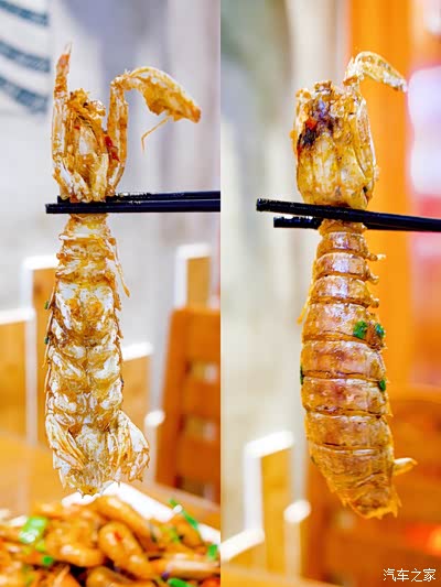 谁还不是大S了,享受了服务员小姐姐的剥虾服务,皮皮虾外皮光看着就很酥脆,内里肉质饱满,虾肉一口咬下去椒盐味十足
