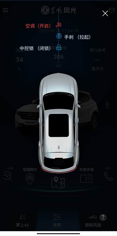 时间一晃而逝,不知不觉已到该回家时间,下午少许阳光让车内温度偏高,远程操控把空调提前打开,让自己第一时间坐上车时,感觉不到车内的炎热。风光E3带有超级智能网联系统,通过手机可以远程操控启动车辆、解锁、上锁、开启空调、开启车窗等功能。对于用强迫症的车友们也是一大神器,我不知道有多少车友经常回到家或者停好车辆刚走出停车场脑子里就突然冒出一个:我有没有锁车门的想法,反正我经常会出现这种想法,但是使用风光E3小风以后完全没有类似顾虑,只有拿出手机轻轻一看就不再担心。