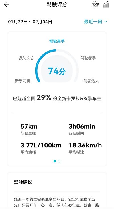 这是最近一个星期行驶记录,行驶时间,平均时速都有,市区不太拥堵路况下