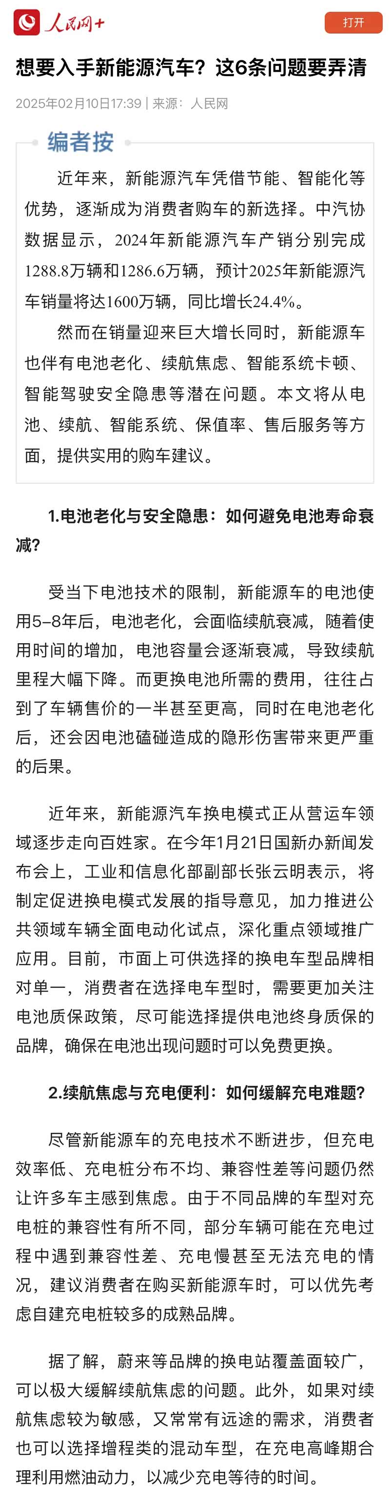 前几天,人民网发布新能源车六大选买标准,分别是
