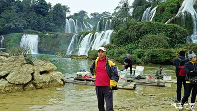 有世界第二大跨国瀑布---德天瀑布全景。以河中间为界,左边是越南,右边是中国。(越南那边是不收费的)。