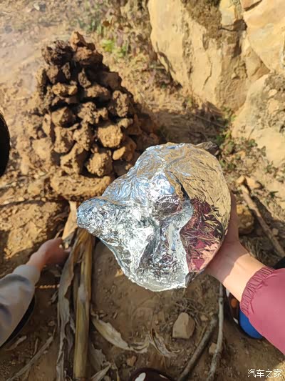 用锡纸包裹起来,直接放进土坑里面,这样的更加美味,车友们还都是小吃货,一个比一个会吃,