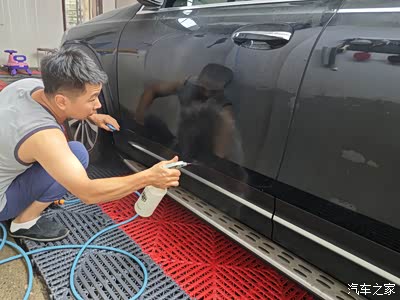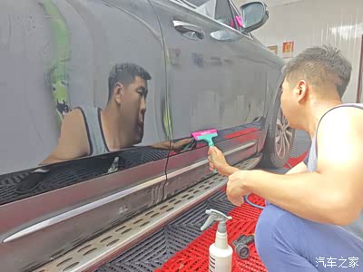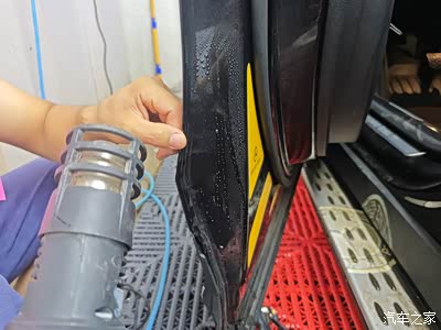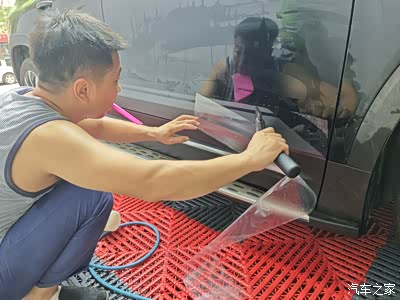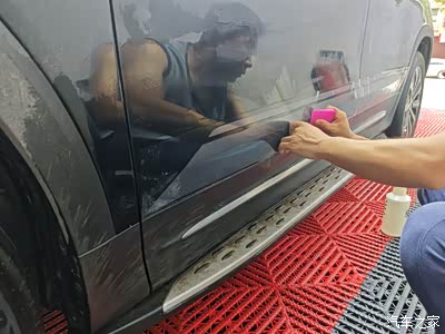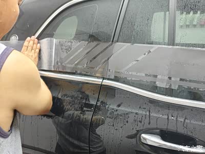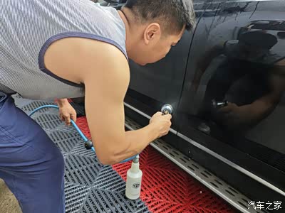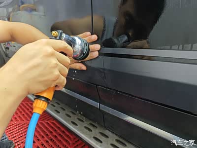 先用喷雾模式打湿车门位置。