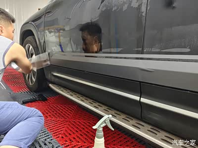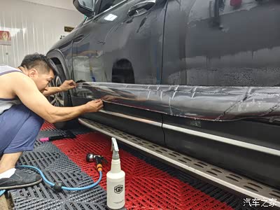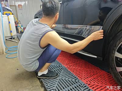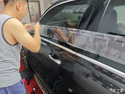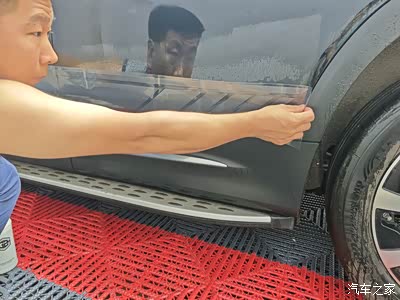 先比对一下位置,我准备贴在车门沿上方,紧挨着车门护板,盖住下腰线,为以后不再被剐蹭这里考虑。