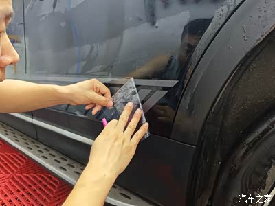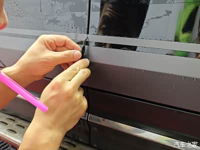 转移膜撕完后,就到了又一个难点——车门中缝。