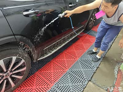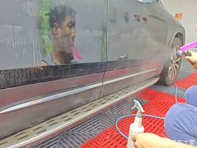 首先清洁车身,简单打了泡沫,并用火山泥仔细清洁。