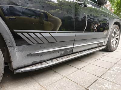 小小的拉花膜盖住了小奔的“伤疤”,也把车门下腰线位置保护起来了,省的下次再遇到无良司机。同时一定程度上增加了小奔的颜值,我觉得这130+40花的还是比较值的。一起来看看效果吧,不同的角度下,拉花膜的颜色是不同的,贴之前我看着像纯黑色,当时还以为发错货了,卖家告知绝对把握,贴上就知道了。