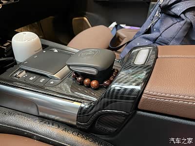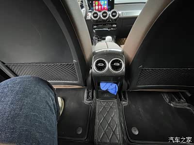 中央扶手和中控也都贴了碳纤维。