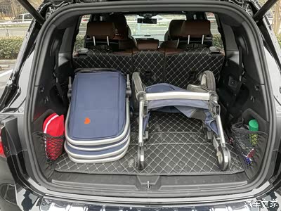 奢侈的放置双胞胎婴儿车,6座模式也能放下,但是极其挤。两旁的网兜是好东西,40CM长。