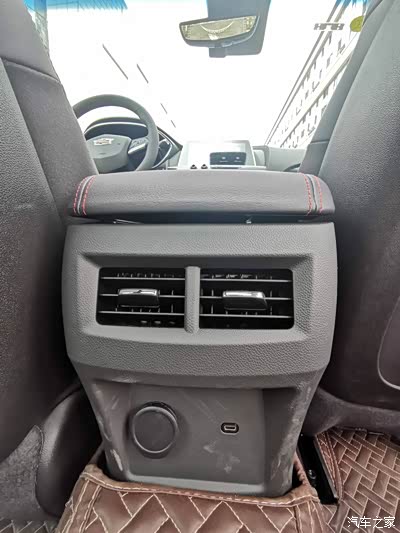后排的空调出风口,设计的比较大,车内制冷速度比较快,及时坐在后排,也能够很快感应到温度提交的速度。下面还有usb充电接口,坐在后排充电比较方便。