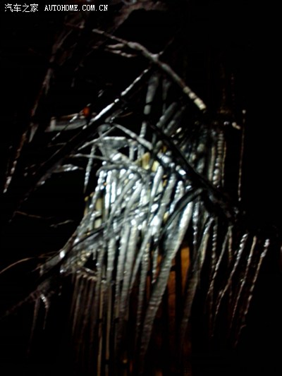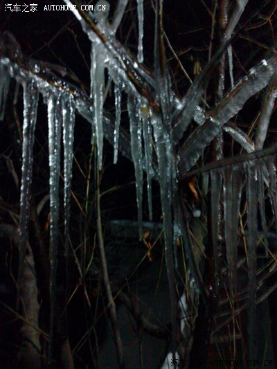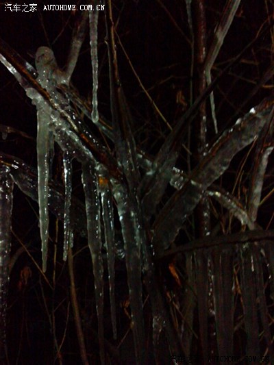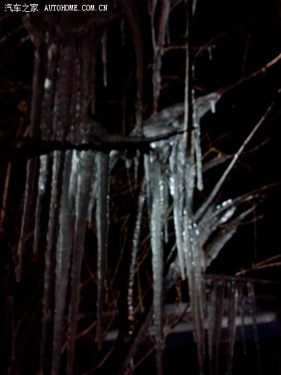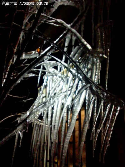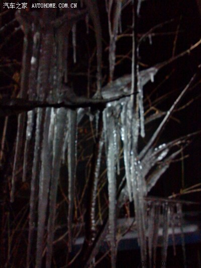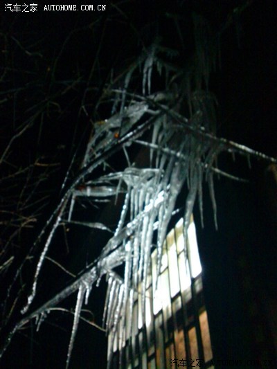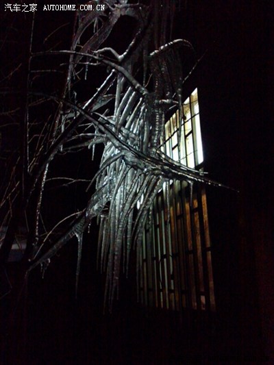 刚刚拿手机拍了几张晚上樱桃树上的冰挂