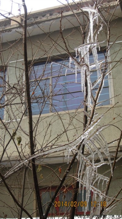 这是棵樱桃树,五月满树的红樱桃煞是好看,今天看到这些冰挂蛮有趣的,随手拍了张↓