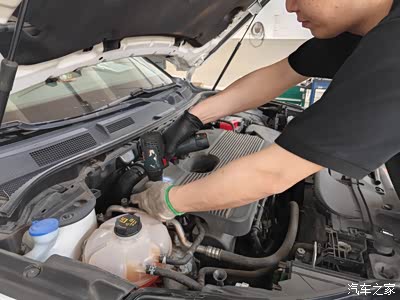 这次保养就是机油机滤和一些常规检查,所以还挺快的。我去车间看的时候,师傅已经加完新的机油,在看机油尺液位了。