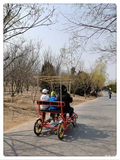 公园里人很多,看样子都是出来踏青赏景顺便放风的。骑车、放风筝、捞小鱼和遛狗的最多。